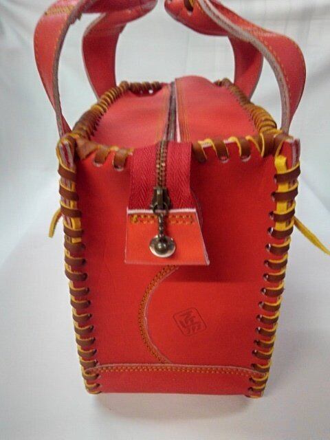 ★グローブ修理の技術を生かし、バッグ本体・持ち手はグローブの革紐で組んでいます。